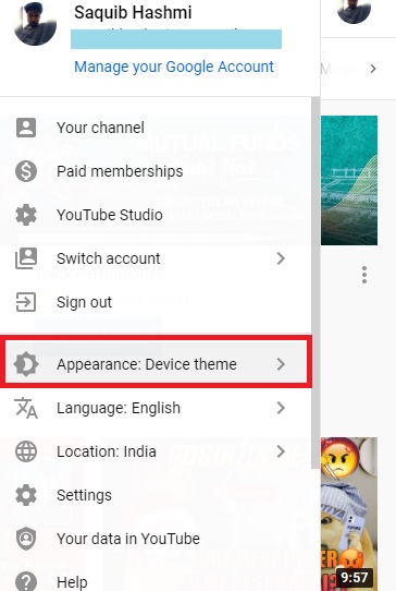 That’s it. The YouTube UI will instantly turn black then. You can reverse the effect anytime by following similar steps and choosing ‘Device Theme.’