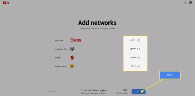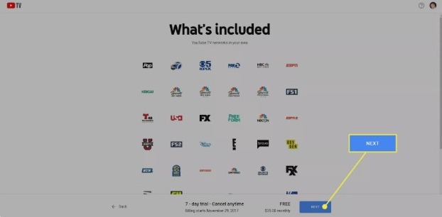 Step-5: Check the networks included in your Youtube TV subscription along with the price. Then, click on Next to proceed.