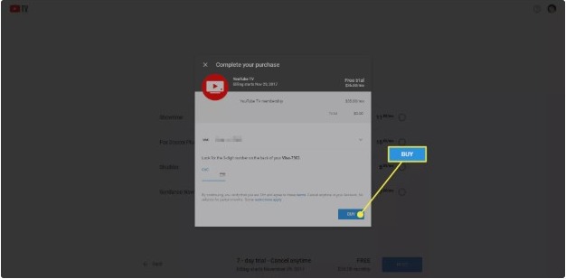 Step-6: Enter the credit card details that you’d like to use to pay for the subscription. Then, click on Buy to complete the free trial sign up process. Don’t worry, you won’t be charged any money until the free trial ends.
